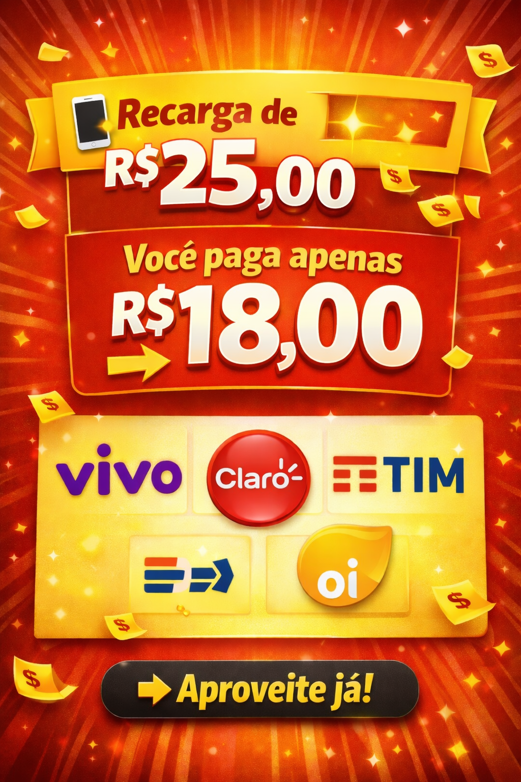 💰 Recarga de R$ 25,00 pagando apenas R$ 18,00