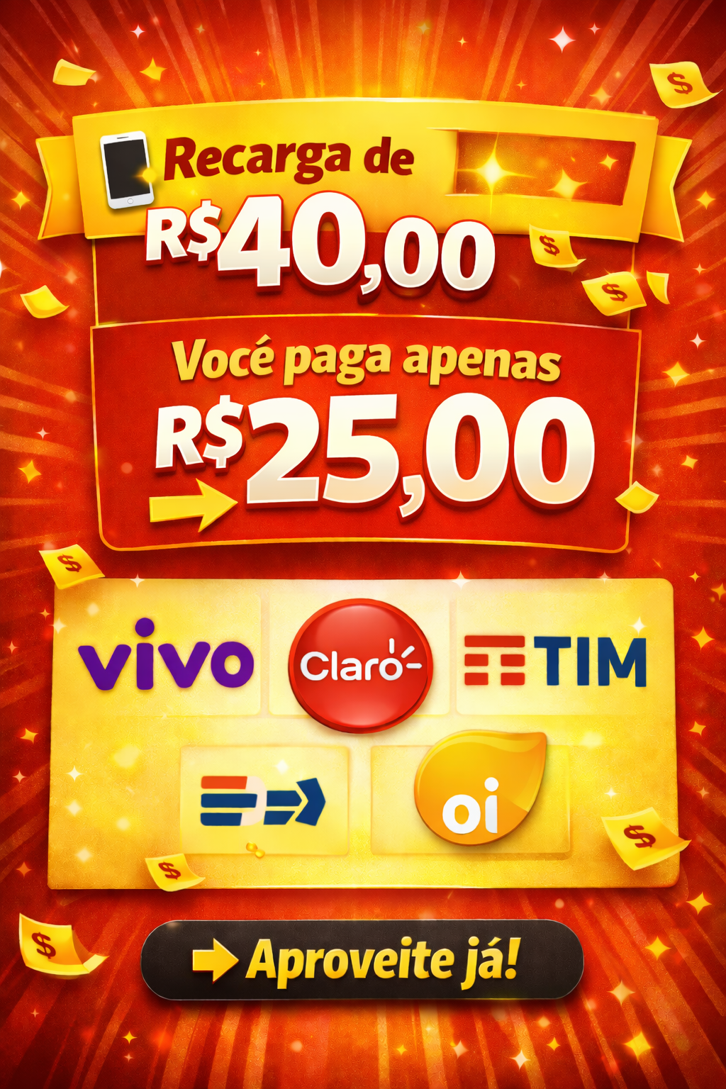 💰 Recarga de R$ 40,00 pagando só R$ 25,00